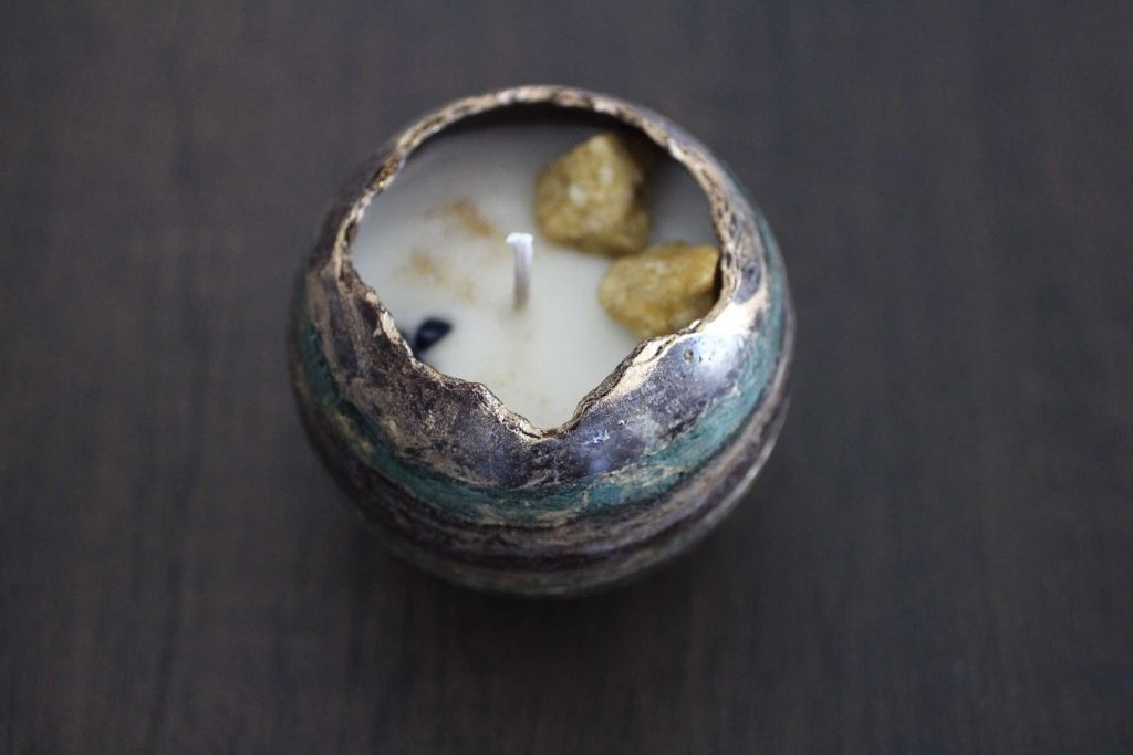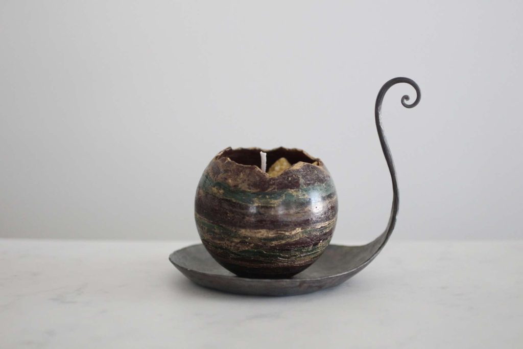 杉山「私自身がお二人の才能のすばらしさを実感しているというのが最大の理由です。まず鷹美さんのキャンドルは自然や生活の中で目にする一瞬の美しさを、鷹美さんの人並み外れた美的センサーで切り取ったような作品です。そのままでも高い芸術性がある上に、火を灯すと光の揺らめきやラメのきらめき、鉱石を透過した陰などが組み合わさり、いつまでも目を離せなくなります。私にとって鷹美さんのキャンドルを灯す時間は、自分のあり方を内省し、新しいアイデアやクリエイティブな気付きを得るために欠かせないものなんです。